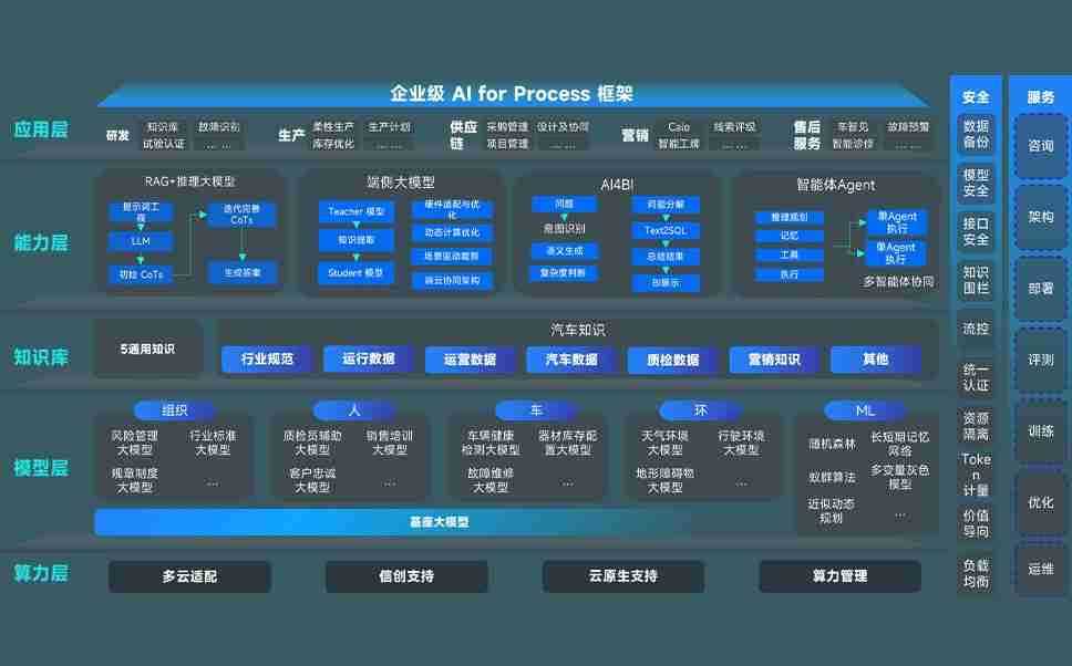 端到端的一站式AI工作空间深度融合了从企业战略规划到日常经营的全流程业务板块,,,,定向解决车企内部领域多、、、部门多、、、、链条长、、、、场景碎片化等难题,,,,支持车企快速构建以AI为核心的生产力写作体系,,,,实现任务执行与AI能力的无缝集成与交互